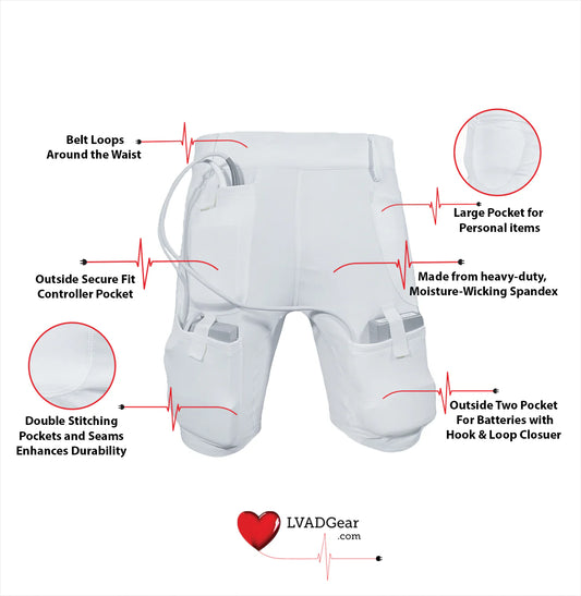 LVAD White Medical Short Unisex for Heartmate 2 and 3