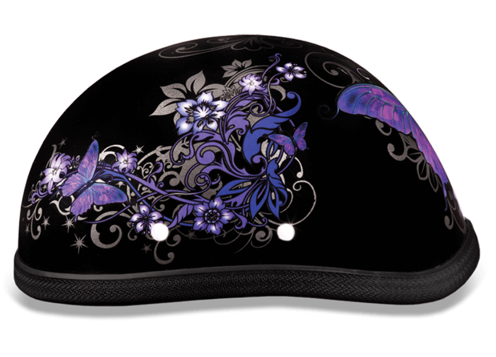 Our Premium Classic Eagle Novelty Item With The Butterfly Graphic Does Not Meet D.O.T. Standards. The Eagle Novelty Item With The Butterfly Graphic Is Fully Lined With A Custom Formed Interior For X-treme Comfort. Each Graphic Item Is Custom Designed And May Vary In Color Or Composition. This Eagle Graphic Novelty Item Has A Clear Lacquer Finish, Available Without Snaps/Visor Only. Free Head Wrap And Cloth Draw String Bag Included.