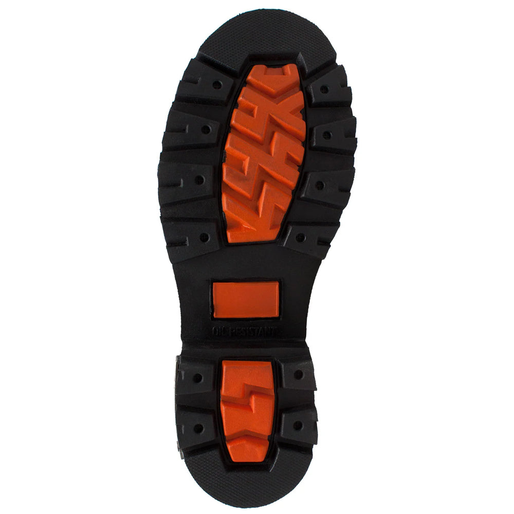Womens 6 inch black biker boot built for comfort, durability, and traction control. Extra heavy duty traction sole for added protection and style. This boot has Goodyear Welt construction with top quality Full-Grain oiled leather, lace up design with buckle strap, and YKK zipper.