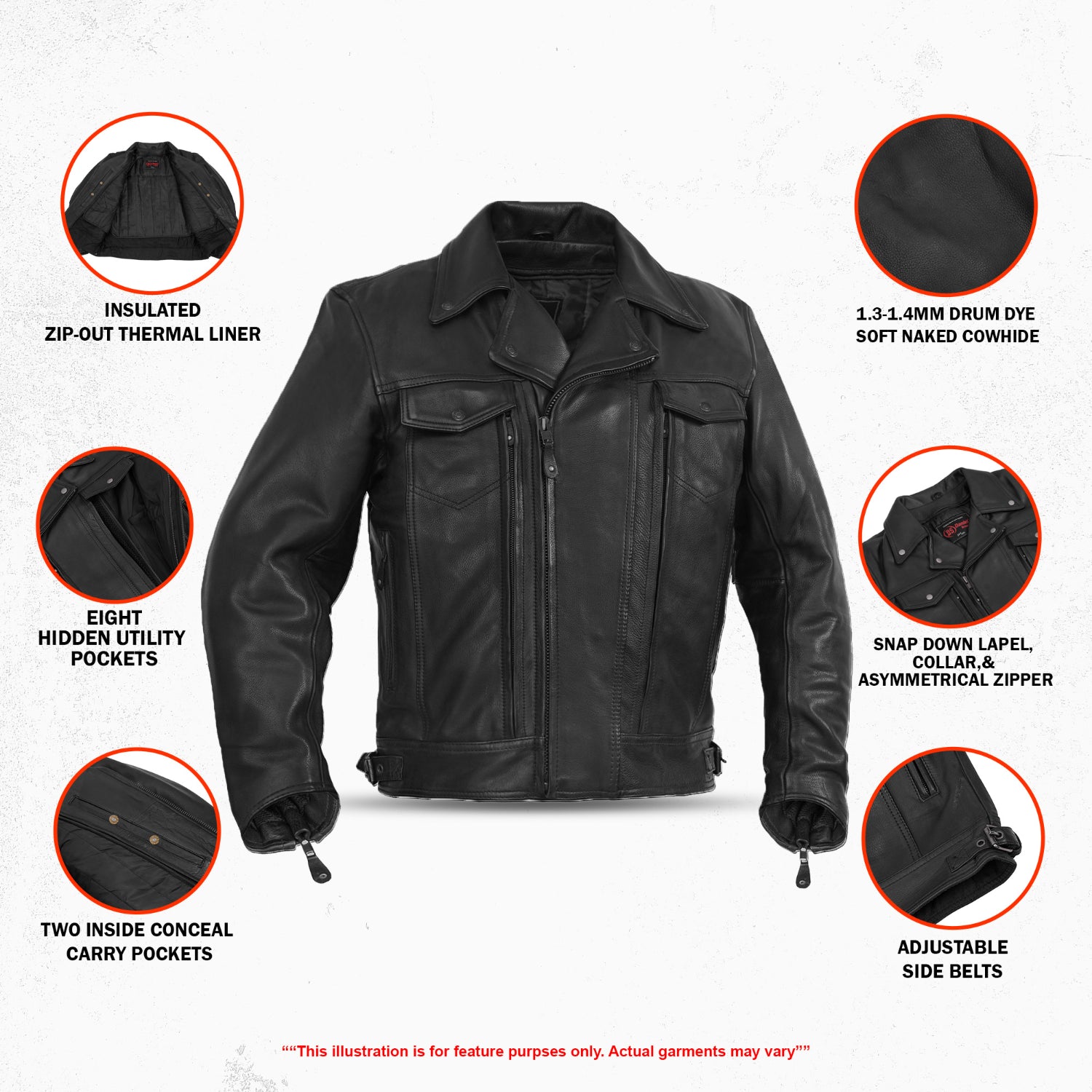 The Clearway Men’s Leather Motorcycle Jacket is engineered for riders who want a clean, aggressive look backed by serious performance. Built with a complete outer shell of superior-grade premium black leather, Clearway delivers a sharp, modern biker aesthetic while standing up to the demands of the road. Thoughtfully constructed with advanced interior materials and ventilation systems, this jacket balances protection, comfort, and everyday utility. Inside, the Clearway features a removable zip-out liner made from premium double-sided quilted fabric, providing warmth when you need it and flexibility when you don’t. Strategic use of Micro Mesh, Polyester 600D Cordura, and breathable vent panels enhances airflow, and durability. Concealed carry pockets, smart access utility storage, and heavy-duty gunmetal hardware ensure this jacket is as functional as it is tough. Finished with original YKK zippers, action back mobility, and adjustable side buckles, the Clearway jacket is built to move with you and perform in all conditions.