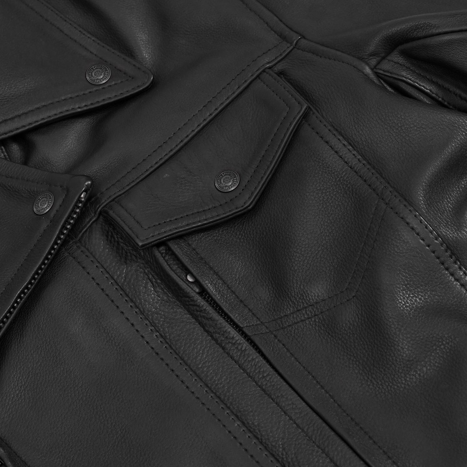 - Classic moto-inspired silhouette with a structured collar.