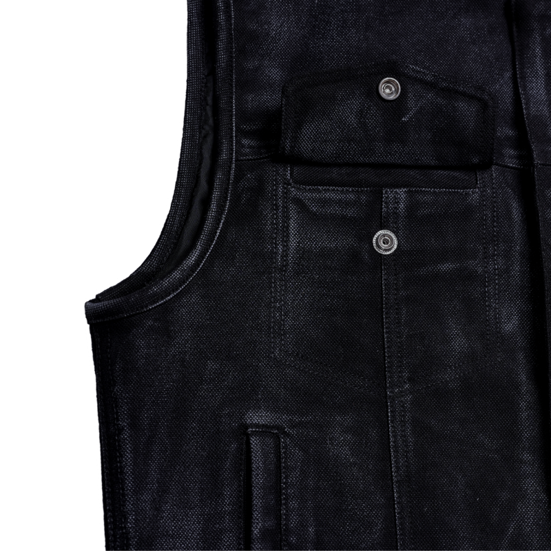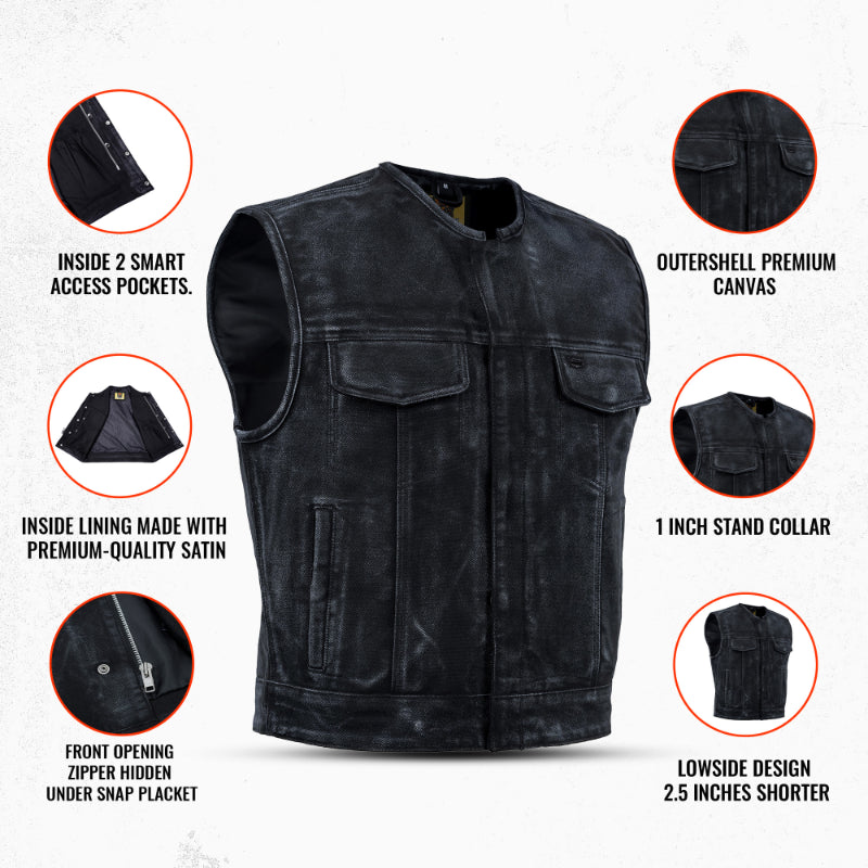 The Desert Drifter Men's Textile Vest brings rugged functionality and classic style together, making it a must-have for riders who want dependable gear without sacrificing looks. Made from premium black canvas material with a wax finish, this vest offers an antique, weathered appearance that only gets better with time.