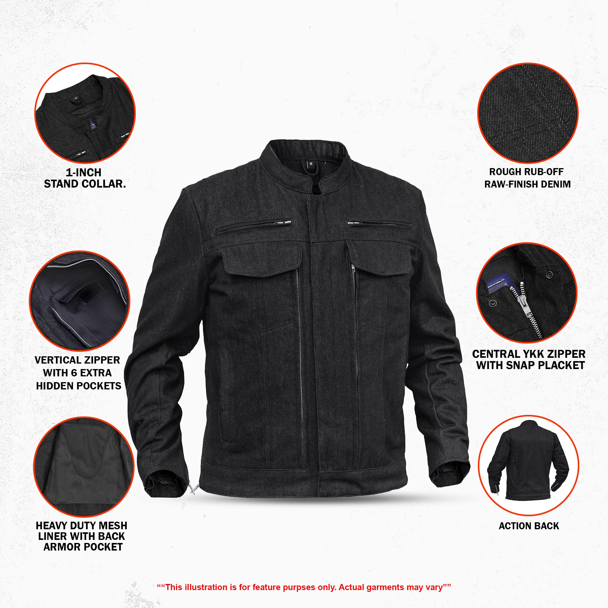 DM915 Men's Rough Rub-Off Raw Finish Denim Jacket