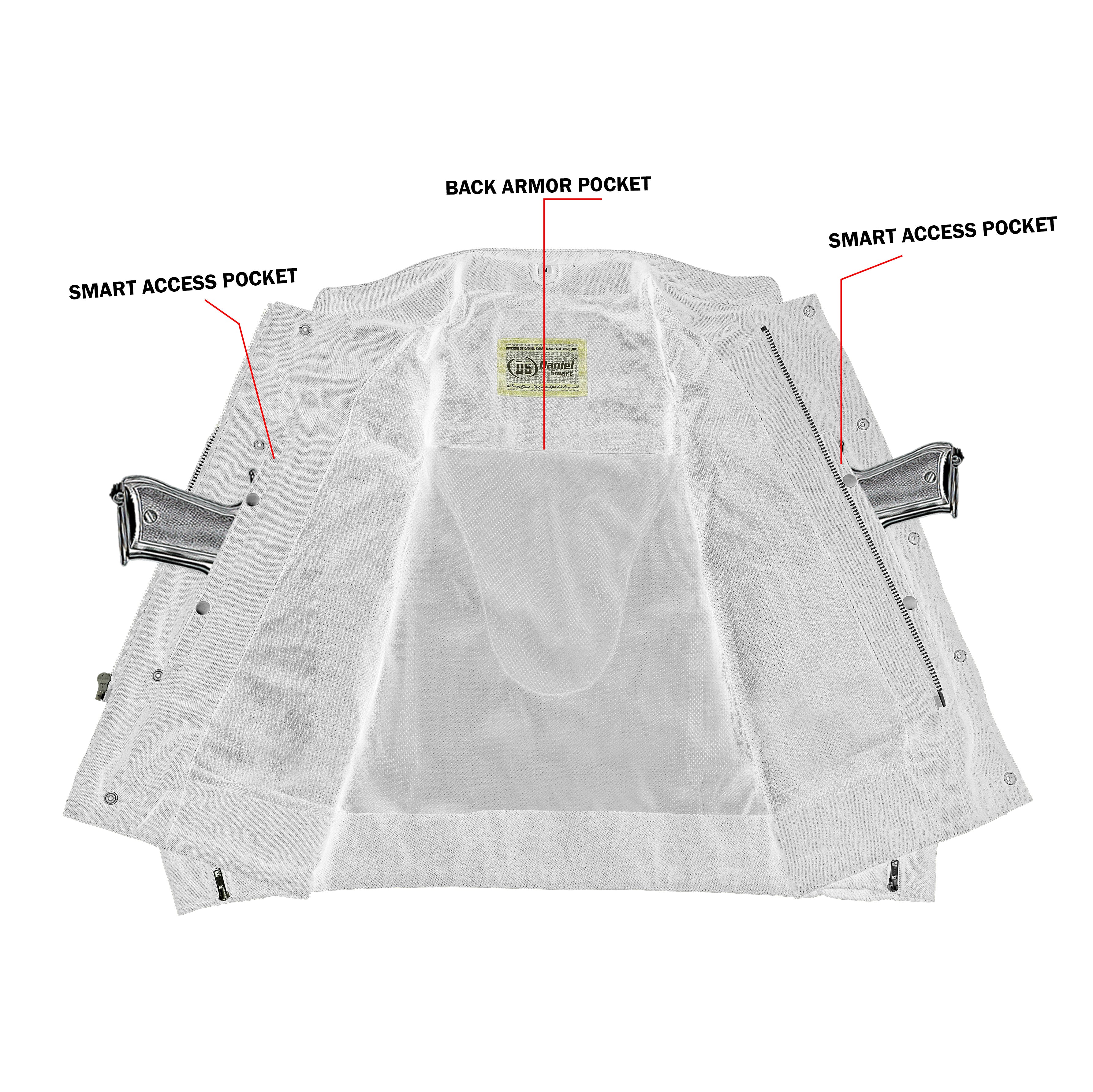 2 upgraded style Smart Access Pockets between the snap and the zipper made of special heavy-duty textile with built-in holsters and snap closure.