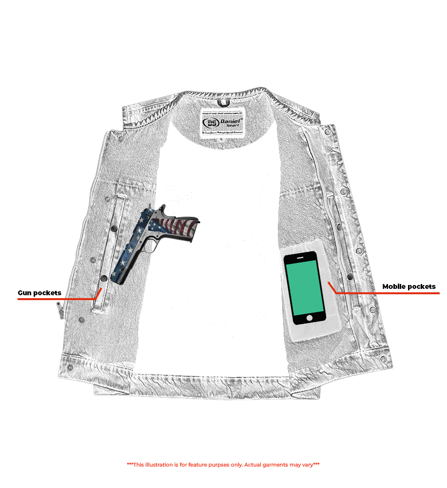 2 upgraded style Smart Access Pockets between the snap and the zipper made of special heavy-duty textile with built-in holsters and snap closure.