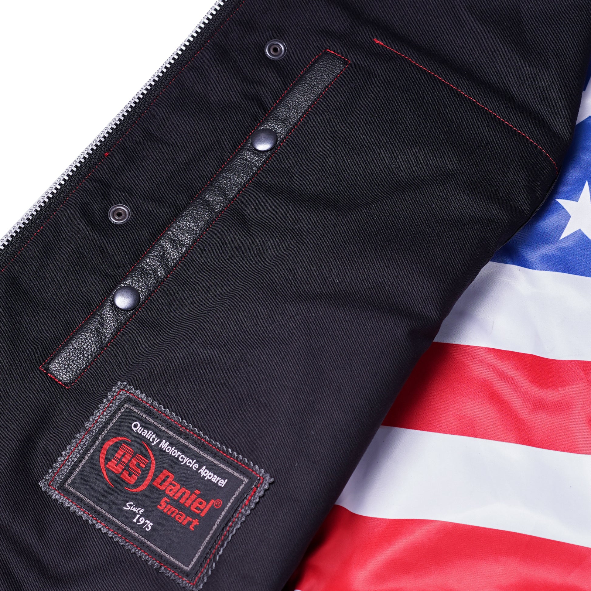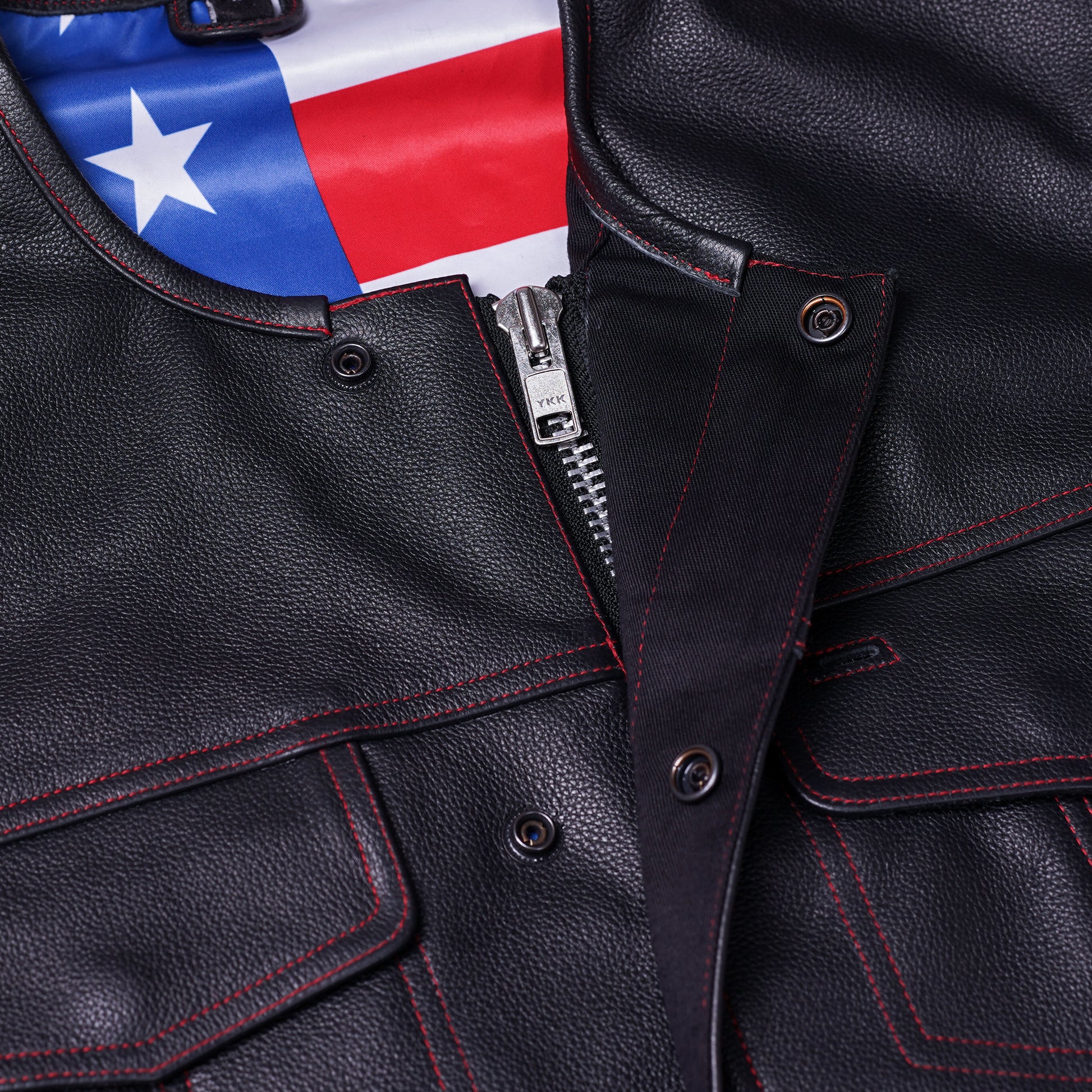 DS155 Men's Leather Vest with Red Stitching and USA Inside Flag Lining