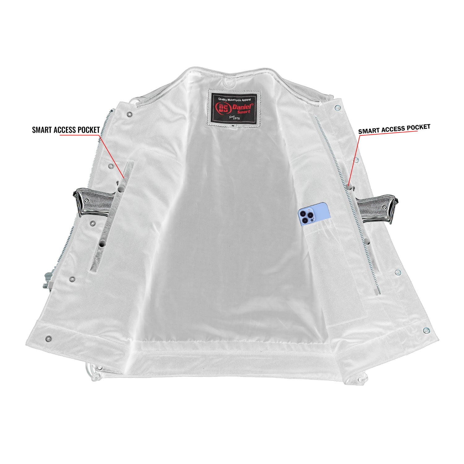 Order your men's Smart Access Pockets biker vest with a gunmetal zipper online today.