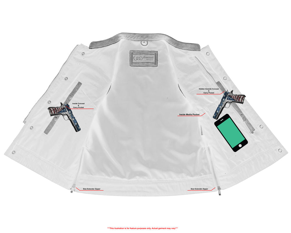 2 upgraded style Smart Access Pockets between the snap and the zipper made of special heavy-duty textile with built-in holsters and snap closure.