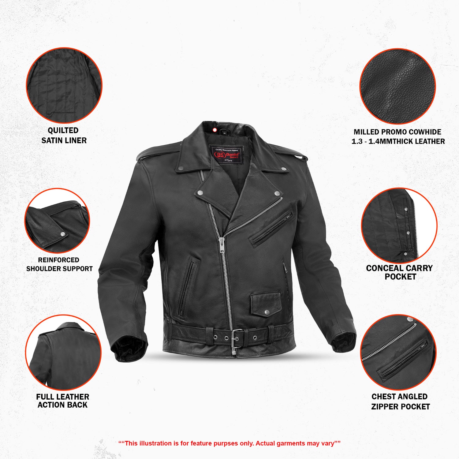 DS710 Economy Motorcycle Classic Biker Leather Jacket - Plain Sides