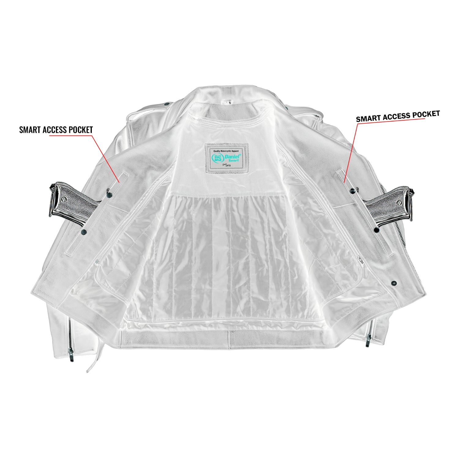 2 upgraded style Smart Access Pockets between the snap and the zipper made of special heavy duty textile with built-in holsters and snap closure.