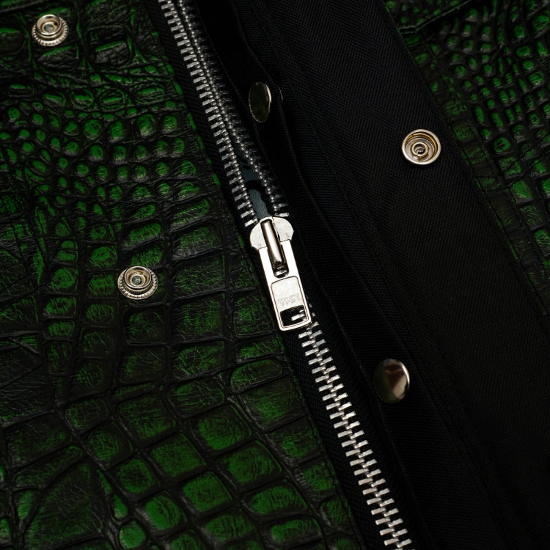 - Complete Outer Shell Made with Premium Crocodile-Effect Leather in Green & Black