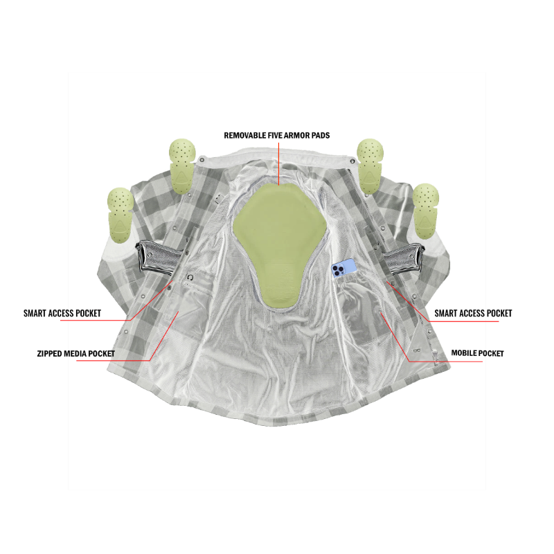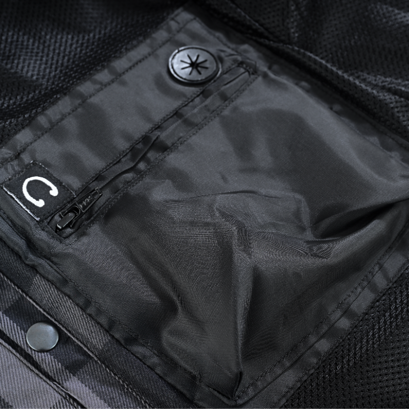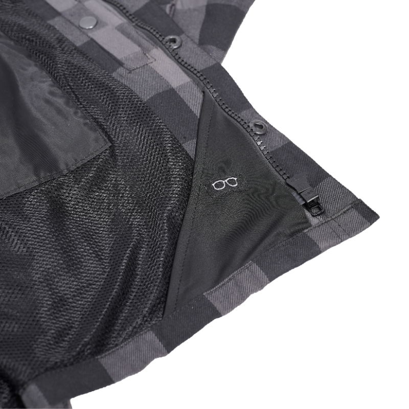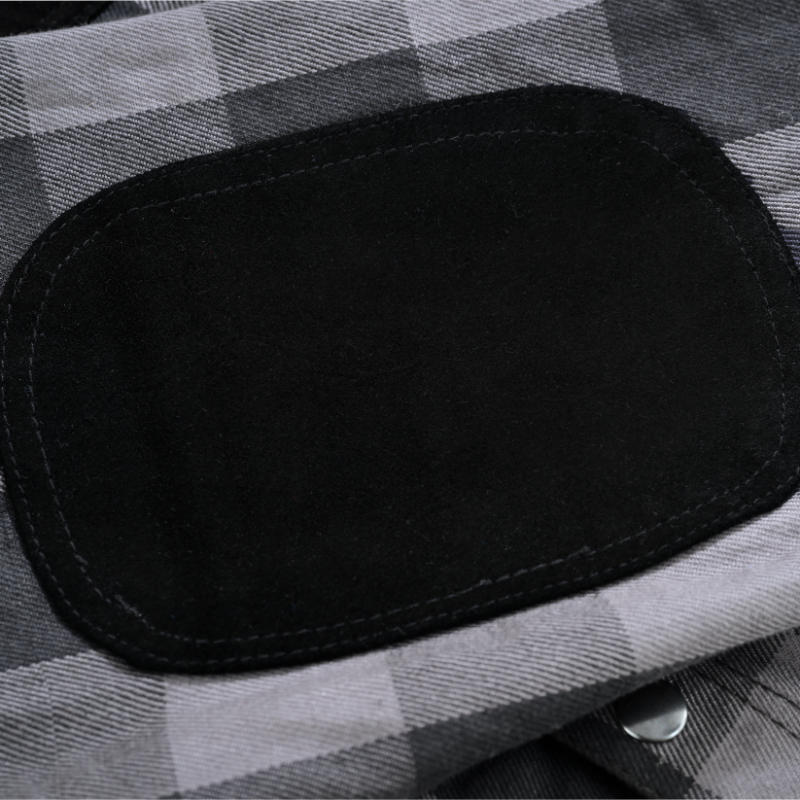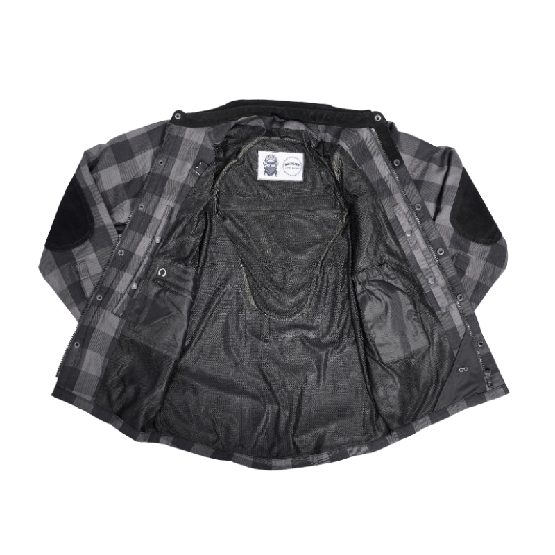 This black and gray flannel shirt delivers a classic, rugged look with neutral tones and leather patches, giving it a timeless yet edgy appeal. The feel is soft and breathable, thanks to the durable cotton flannel and micro-mesh inner lining, making it comfortable for everyday wear or extended rides. The design balances utility and style, providing easy access pockets and flexibility for movement, so you’re ready for whatever the road throws your way.