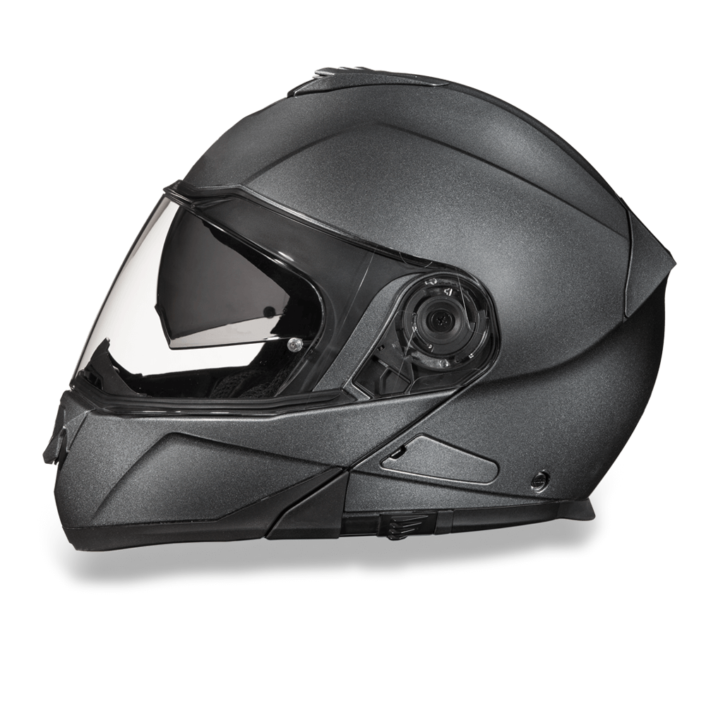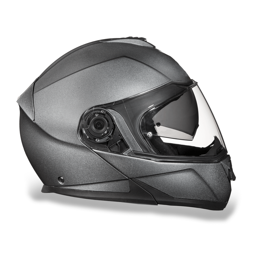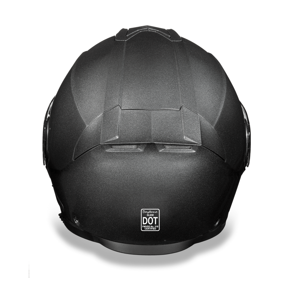 Our D.O.T. Daytona Glide Modular Helmet, With Inner Anti-Scratch Retractable Smoke Shield, In A Custom Gun Metal Grey Metallic, Meets And Exceeds D.O.T. FMVSS 218 Standards. With 2 Different Shell Sizes, You're Sure to Get That Proportionate Fit!! This Modular Helmet features A Dual Shield System; Outer Anti-Scratch, Pinlock 30 Fitted Clear Shield And Inner Anti-Scratch Retractable Smoke Shield. Also Has A Quick Release Lock Retention System; One Finger Release Lever For Easy Detachment, Adjustable Chin And Forehead Ventilation And A Removable, Hand Washable Interior (Moisture Wicking Fabric). Bluetooth Ready. Free Head Wrap And Draw String Bag Included. Sizes Range From XS-4XL.