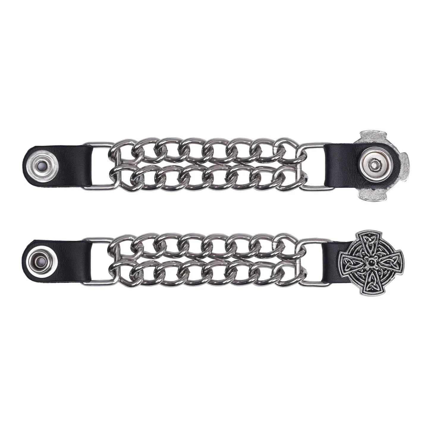The vest extender also features a chrome motorcycle chain design, giving it a rugged