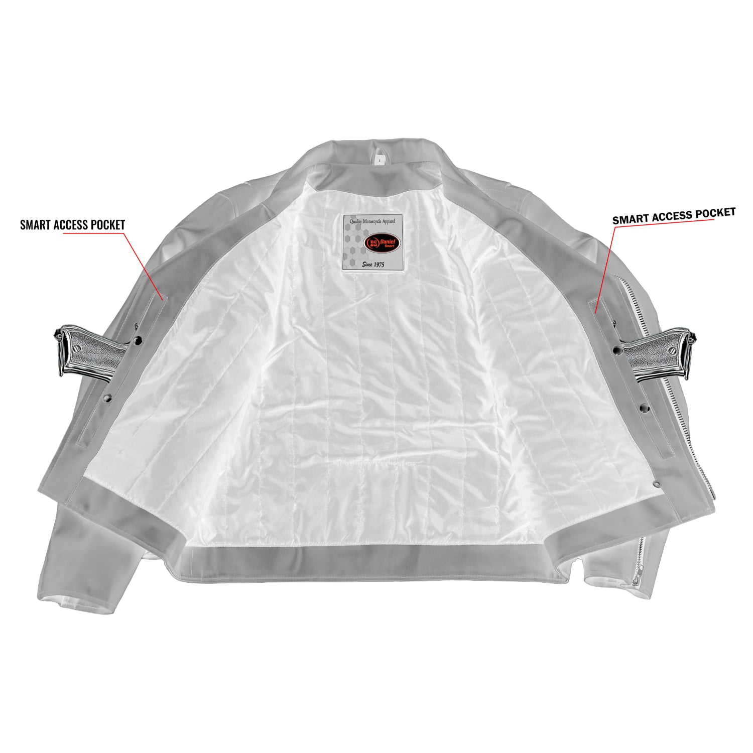 - Oxford-lined concealed carry pockets with holster support