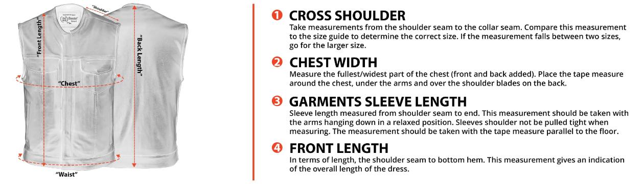 Please note that our sizing chart reflects body measurements, not the garment's dimensions. For the best fit, measure your body using a tape measure and compare it to the chart on the product page. If you're referencing your favorite jacket for comparison, remember to allow for 2–4 inches of ease to ensure comfort and proper fit.