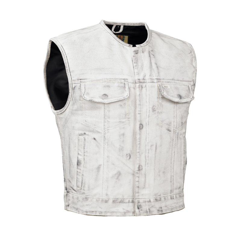 The Ravage Men's Textile Vest merges rugged construction with everyday functionality, crafted from premium white canvas for superior durability and a timeless aesthetic. Featuring a wax finish, this vest develops an antique, weathered look over time, enhancing its classic appeal with every wear.